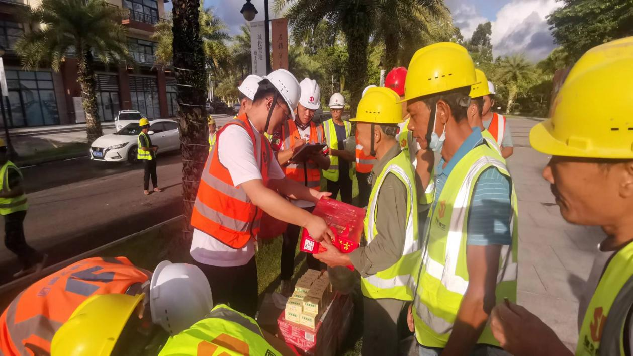 在项目工地,工友们奋斗在一线,虽身处高温之中,但不惧酷暑,坚守在工作岗位,用汗水诠释对岗位的热爱与责任。公司领导在检查期间给现场工人送去藿香正气水、西瓜、王老吉凉茶等夏日降暑物品。公司领导通过项目工作检查后对项目管理人员的能力给予认可和肯定,并提出要求:希望项目管理人员始终保持严谨、认真负责的态度,使命不改,初心不怠,继续发扬不畏艰苦的工作精神。公司领导也充分肯定了项目施工建设工作,并对坚守在一线施工项目现场建设人员的艰辛付出表示诚挚的慰问和感谢。他叮嘱项目经理在疫情、高温期紧张工作的同时,要做好自身的防暑降温、疫情防控工作,确保每位员工的健康安全。